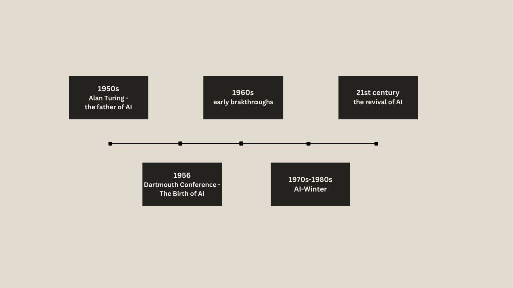 To understand what AI is today, we need to rewind a bit. The idea of machines that could “think” or mimic human intelligence isn´t new – it´s been around for centuries. Philosophers as far back as the ancient Greeks toyed with the concept. But it wasn´t until the mid-20th century that AI started to become more than just science fiction.